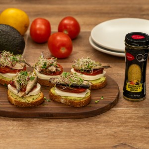 Sumérgete en una experiencia gastronómica única con nuestros crosstini de jitomate con sardina. Una combinación exquisita que deleitará tu paladar y sorprenderá a tus invitados.