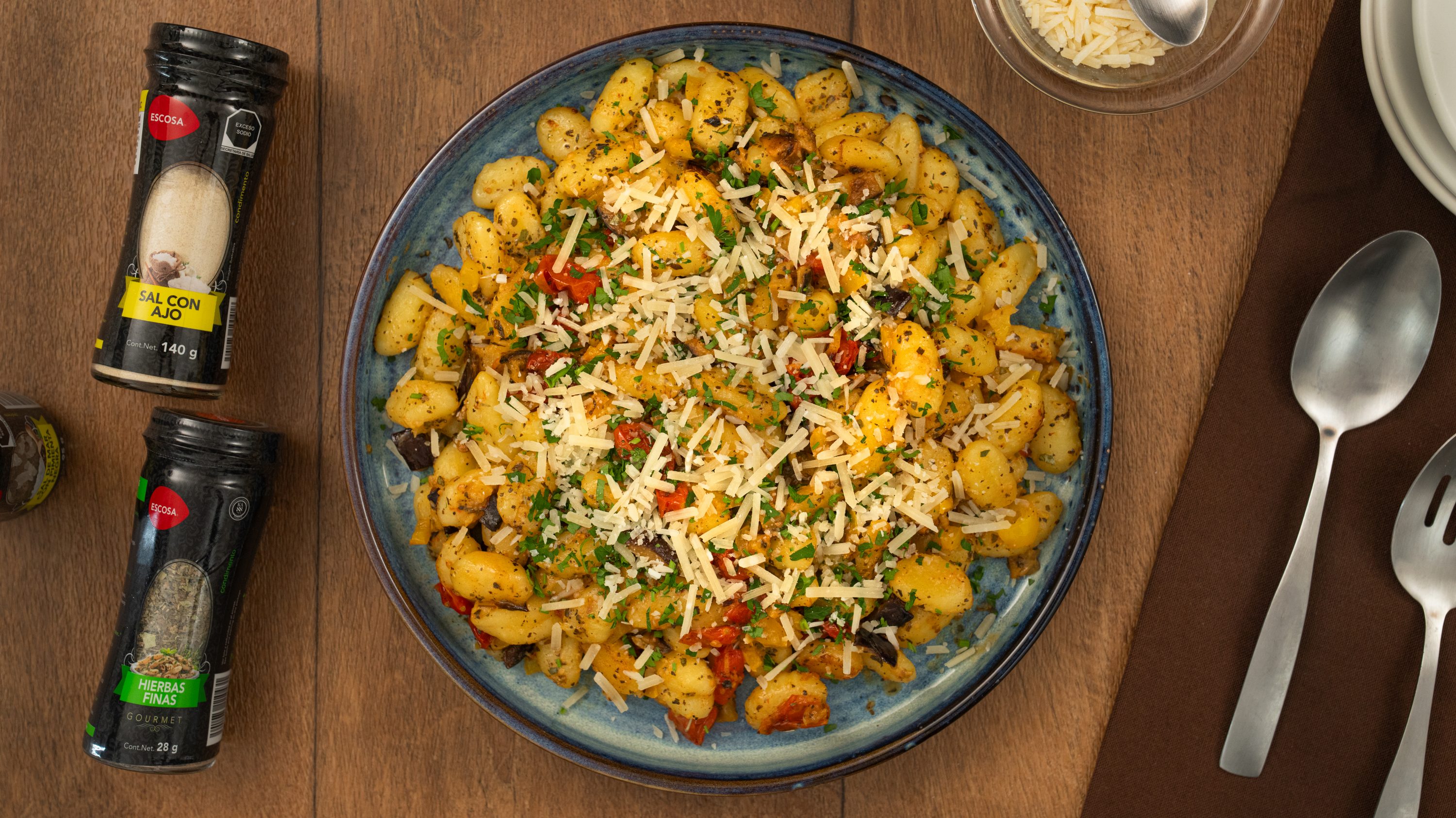 - Saltear y dorar:En un sartén amplio, agrega un poco de aceite de oliva y dora ligeramente los ñoquis para darles textura. Incorpora las verduras asadas.