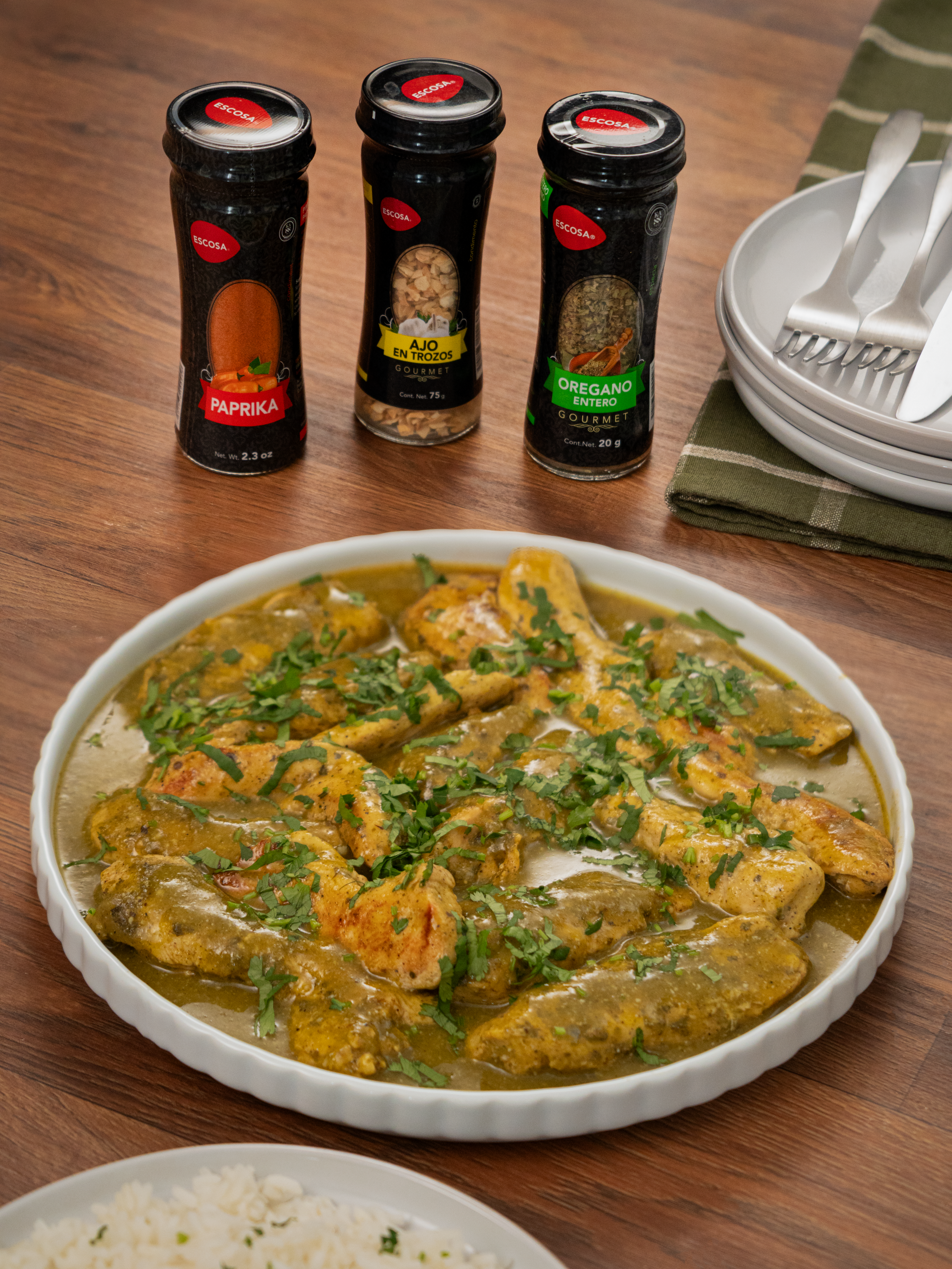 - Marinar el pollo: Cubre las fajitas de pechuga con la mezcla preparada y espolvorea la Pimienta Negra Escosa y el Orégano Escosa por ambos lados. Reserva mientras preparas la salsa.